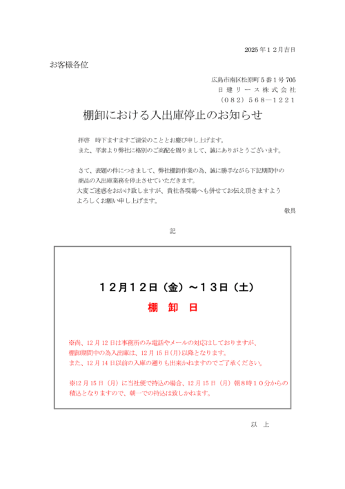 日建リース株式会社は広島県を中心に、建築・土木用仮設資機材の総合レンタルをしています。
